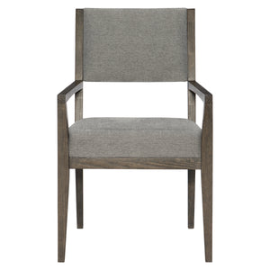 Solid Ash.Cerused Charcoal finish.Upholstered seat and half back (inside and outside) with no welt or nailhead trim.Neutral fabric.