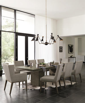Solid Ash.Cerused Charcoal finish.Upholstered seat and half back (inside and outside) with no welt or nailhead trim.Neutral fabric.