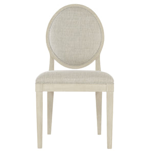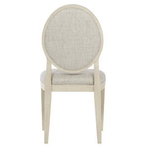 Quartered ash solids.Upholstered slip seat, inback and outback with welt.Rounded back.Cerused Linen finish.