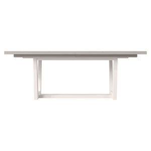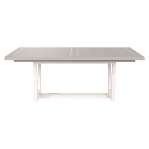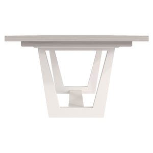 Ash solids and engineered veneer in Mist finish with inset inner metal border in Polished Nickel finish on table top; faux stone base in Fossil finishTwo 20" leaves, also with inset Polished Nickel frameOpen baseAdjustable glidesSpecifications subject to change without notice
