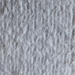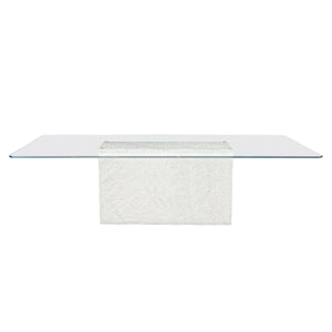 5/8' clear glass top with clipped corners and eased edges.Chiseled Arctic White marble with steel glass supports on top in Bright Silver finish.Adjustable glides.