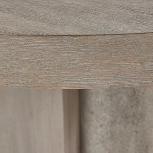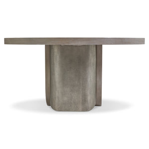 Round mahogany table top in Forry finish and base of one mahogany pedestal in Forry finish and one cast aluminum accent pedestal in Graphite finishAdjustable glidesSpecifications subject to change without notice