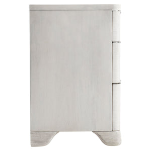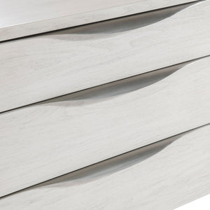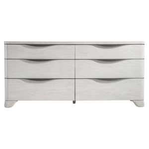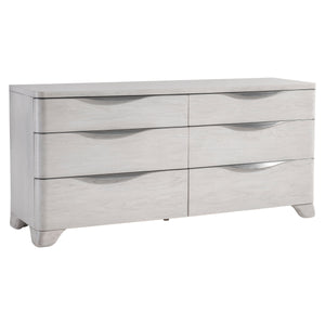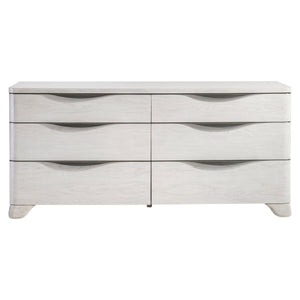 Walnut wood case in Lutra finish atop cast resin legs in Lutra Faux Stone finishSix soft-close drawers with full length brushed stainless steel pulls in Nickel finishAdjustable glidesAnti-tip kitNot suitable for use with TV