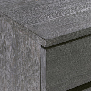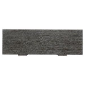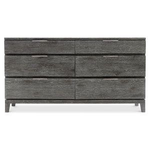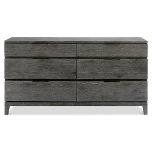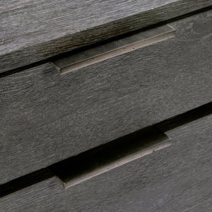 Rustic oak in Sutton finish with cast aluminum tab pulls in Dark GraphiteSix pull-to-open drawersAdjustable glidesAnti-tip kitNot suitable for use with TVSpecifications subject to change without notice