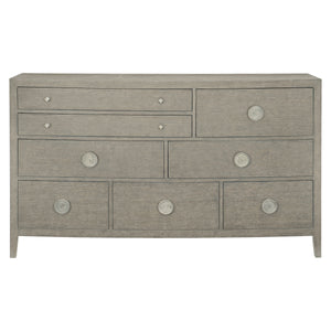 Bowed front with eight drawersTwo center support legsAdjustable glidesAnti-tip kitDresser is bored for optional 384-321G mirror support attachment