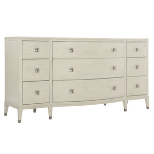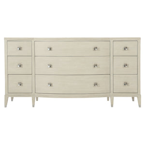 Wood bead around top.Nine drawers.Center drawers have bowed fronts.Metal ferrules - excluding center back legs.Adjustable glides.