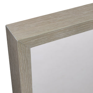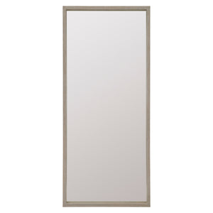 Quartered ash solidsRectangular wood-framed floor mirror in Dune finish with inset, non-beveled mirrored glassHangers not includedAnti-tip kitSpecifications subject to change without notice