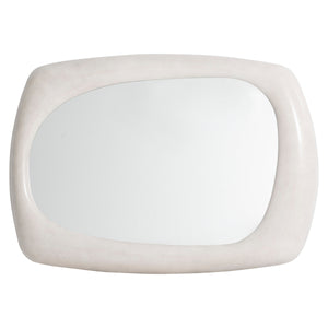 Non-beveled mirrored glass framed in cast resin in Lutra Faux Stone finishHangs horizontally or verticallyHangers includedSpecifications subject to change without notice
