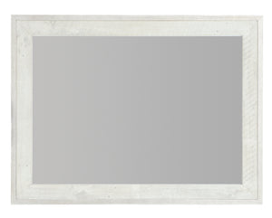 Metal outer frame in Glazed Silver finish.Inner wood frame in Brushed White finish.Can be hung vertically or horizontally.Due to weight, must be hung on stud.