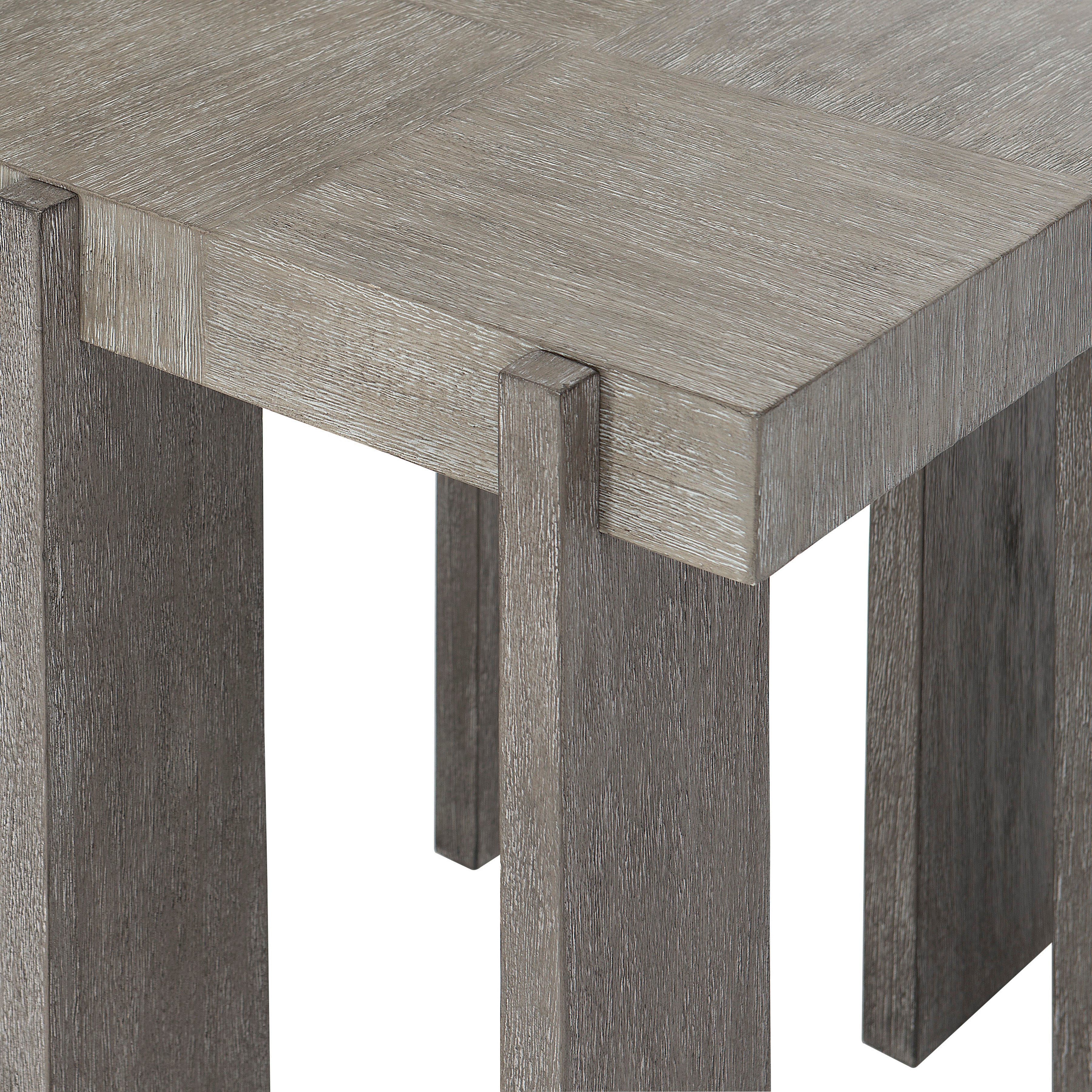 Rectangular side tableFancy face top in Light Shale finishLeg panels in Dark Shale finishAdjustable glides
