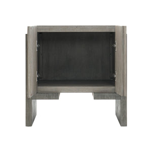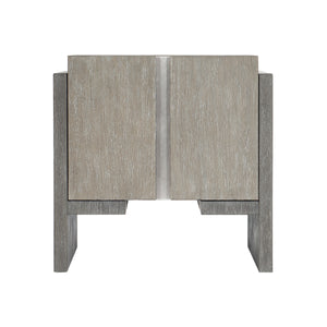 Two-tone finish - Case in Light Shale finish and support panels and rails in Dark Shale finishTwo soft/self-closing doors with finger pulls and inset brushed stainless steel panelFelt tabs on doorsOpen storage behind doorsAdjustable glides & Anti-tip kit.