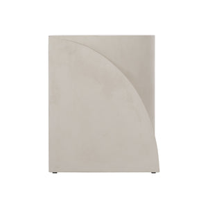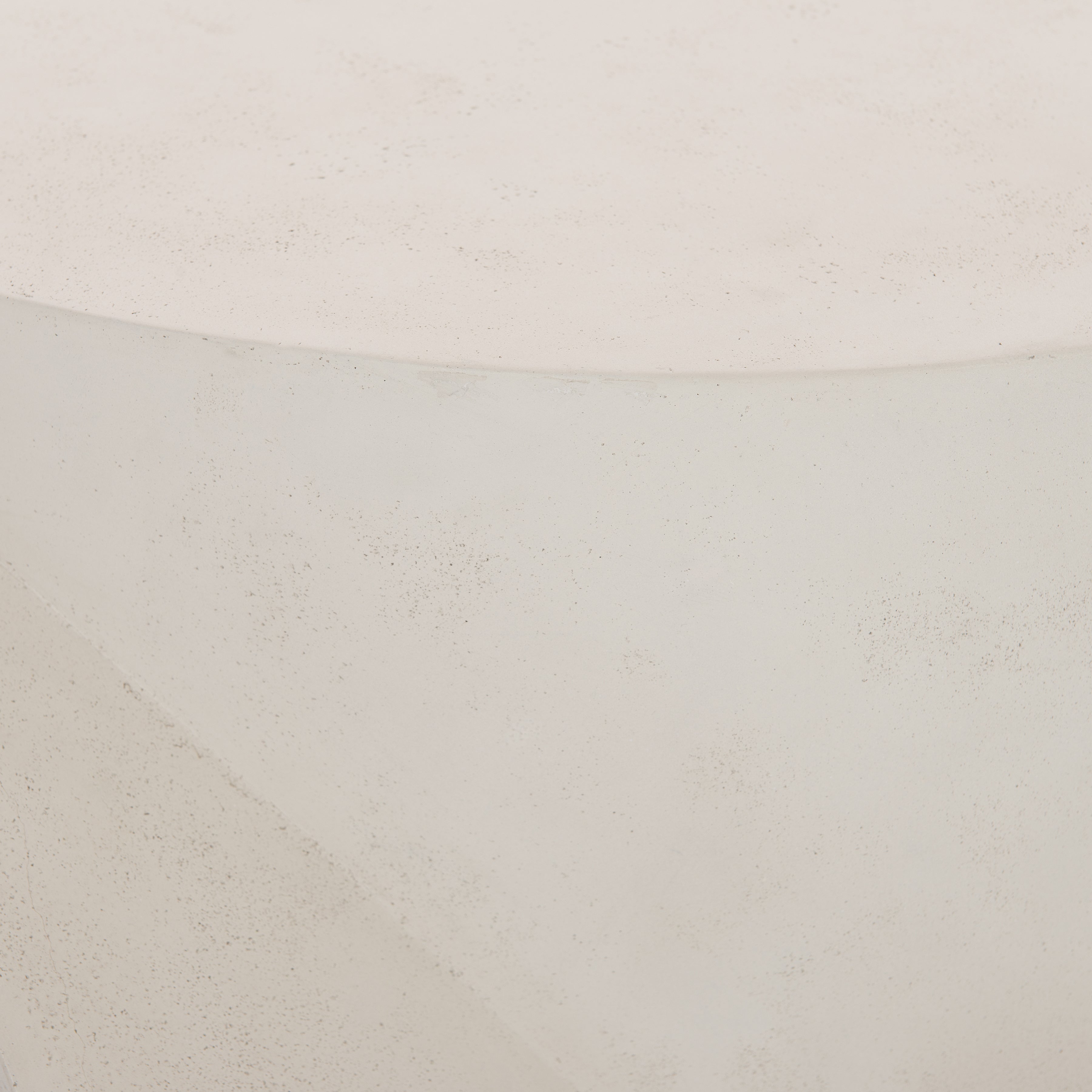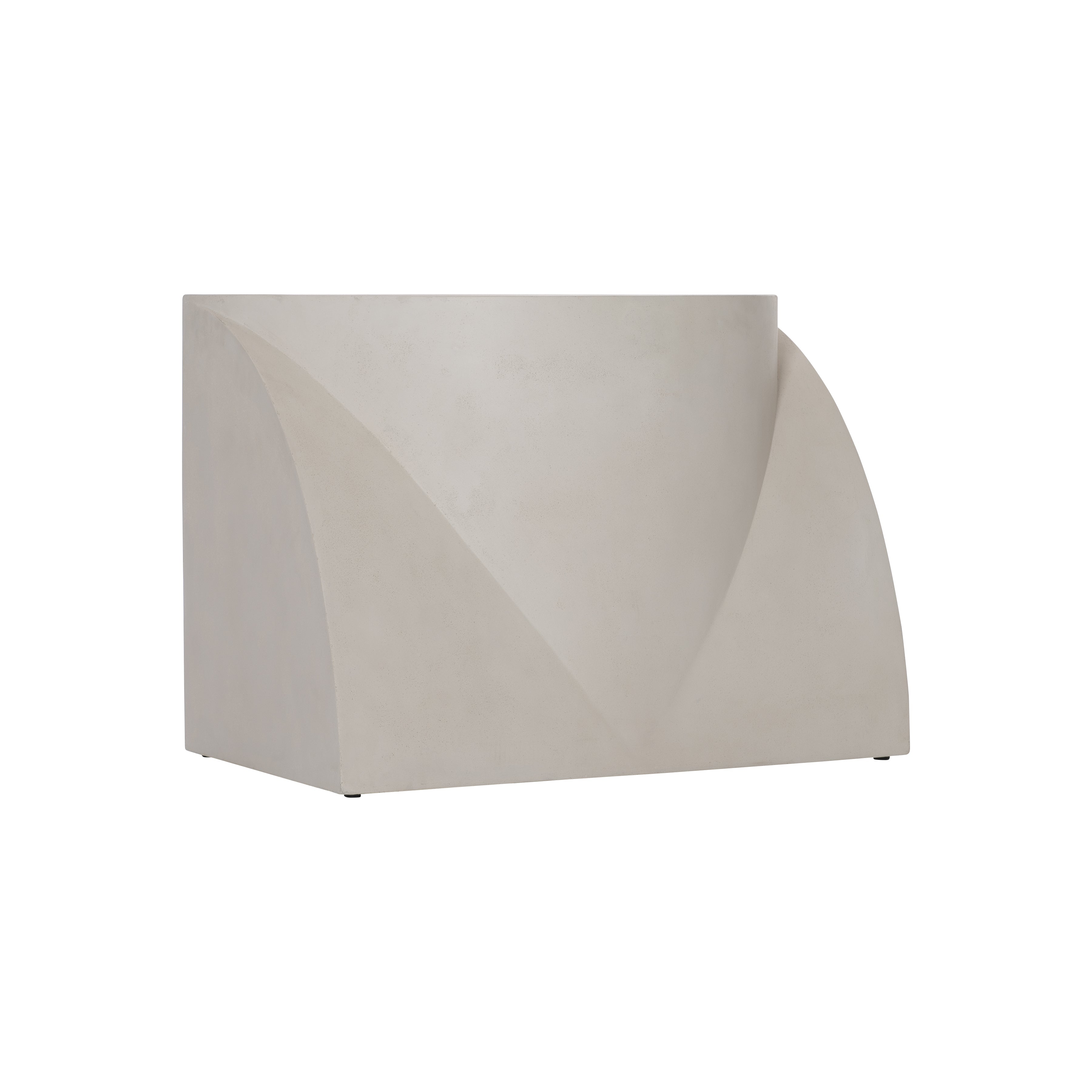 Geometric shaped side table.Textured stonecast.Natural finish.Adjustable glides.