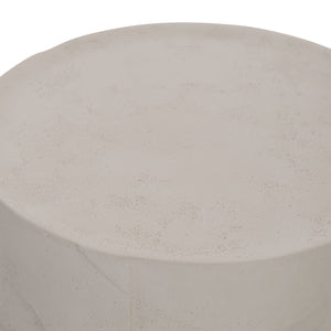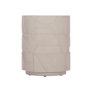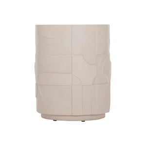 Cylindrical accent table.Shallow basin shaped top.Plinth base with dimensional carved organic designs on sides.Adjustable black glides.