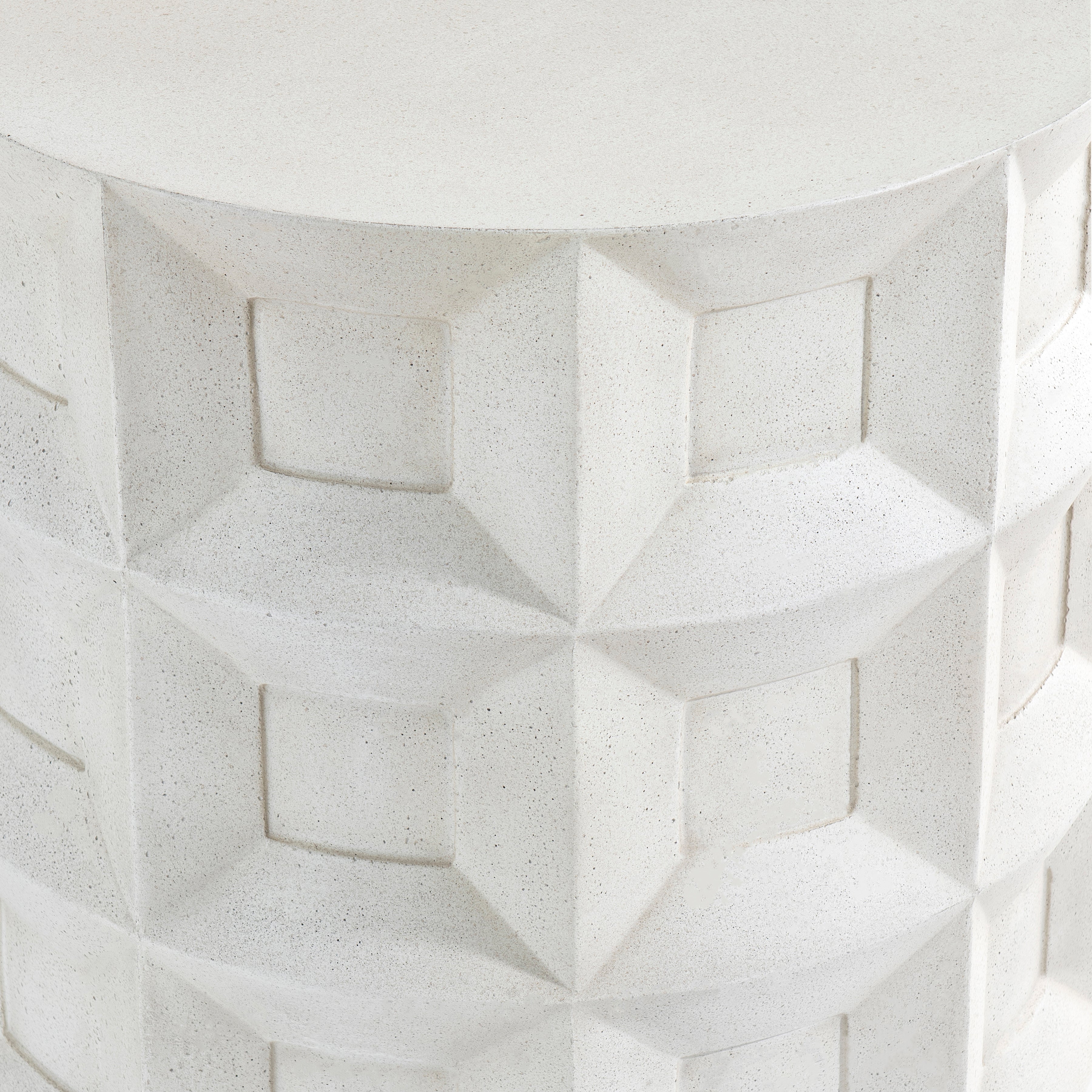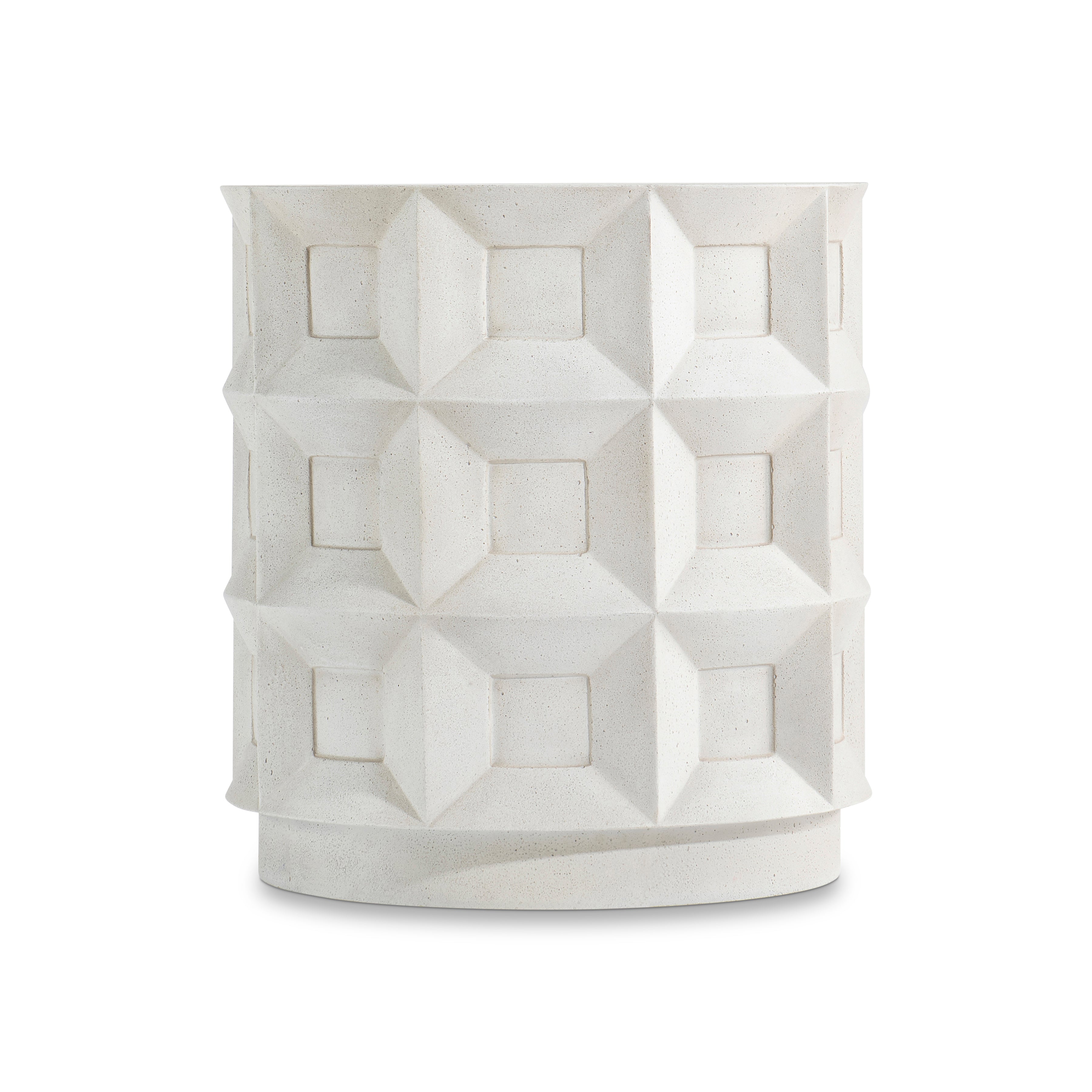 Cast glass-reinforced concrete in Buff finish with smooth topCoffered design on sidesPlinth baseAdjustable glides