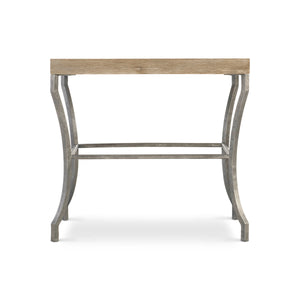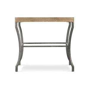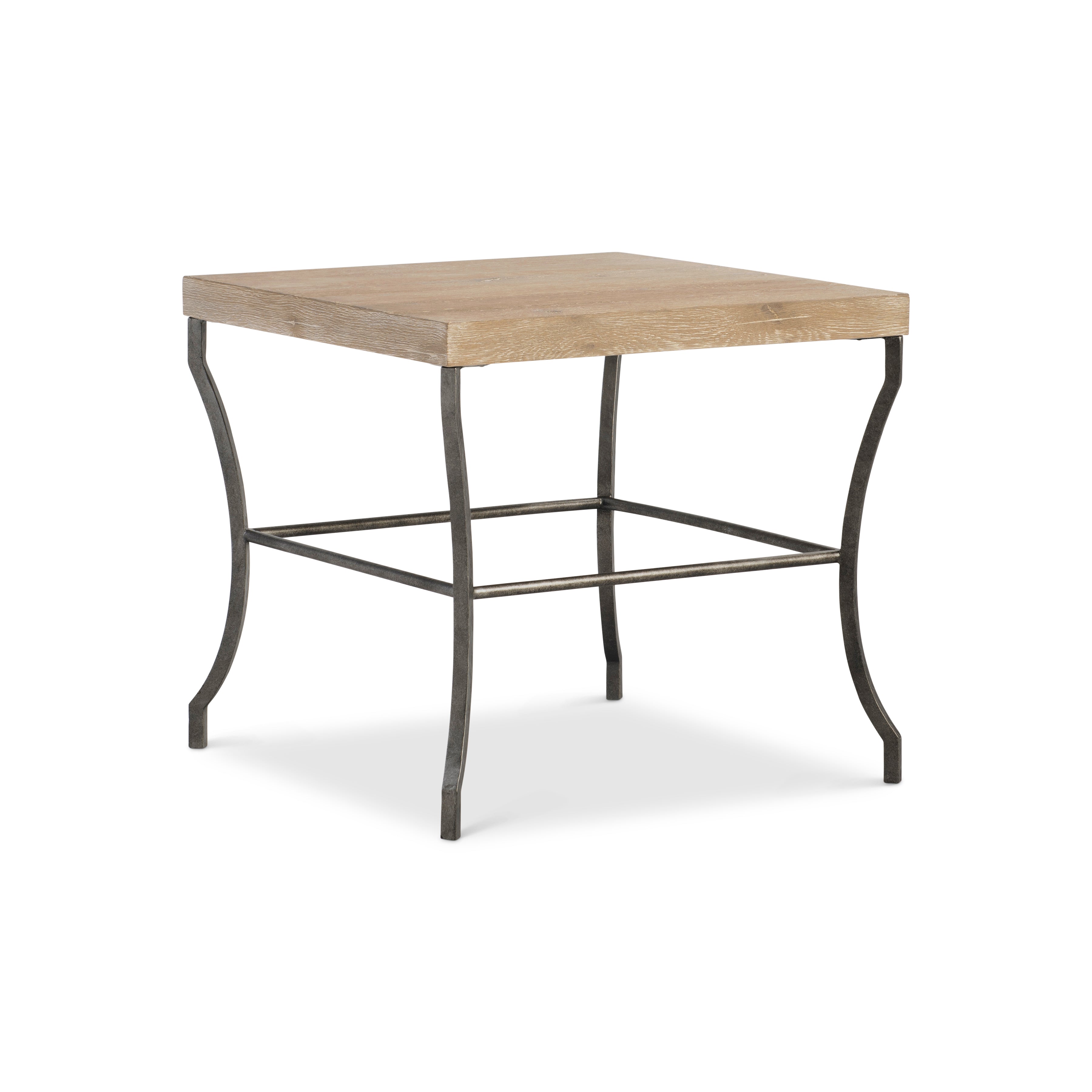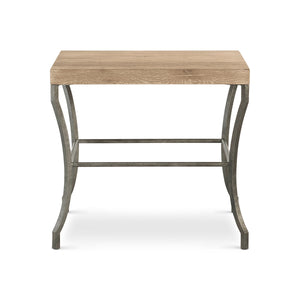 Square Side Table with Wirebrushed Oak top in Aurum finishTexture Steel Base and Stretcher in Barlow finishAdjustable glides