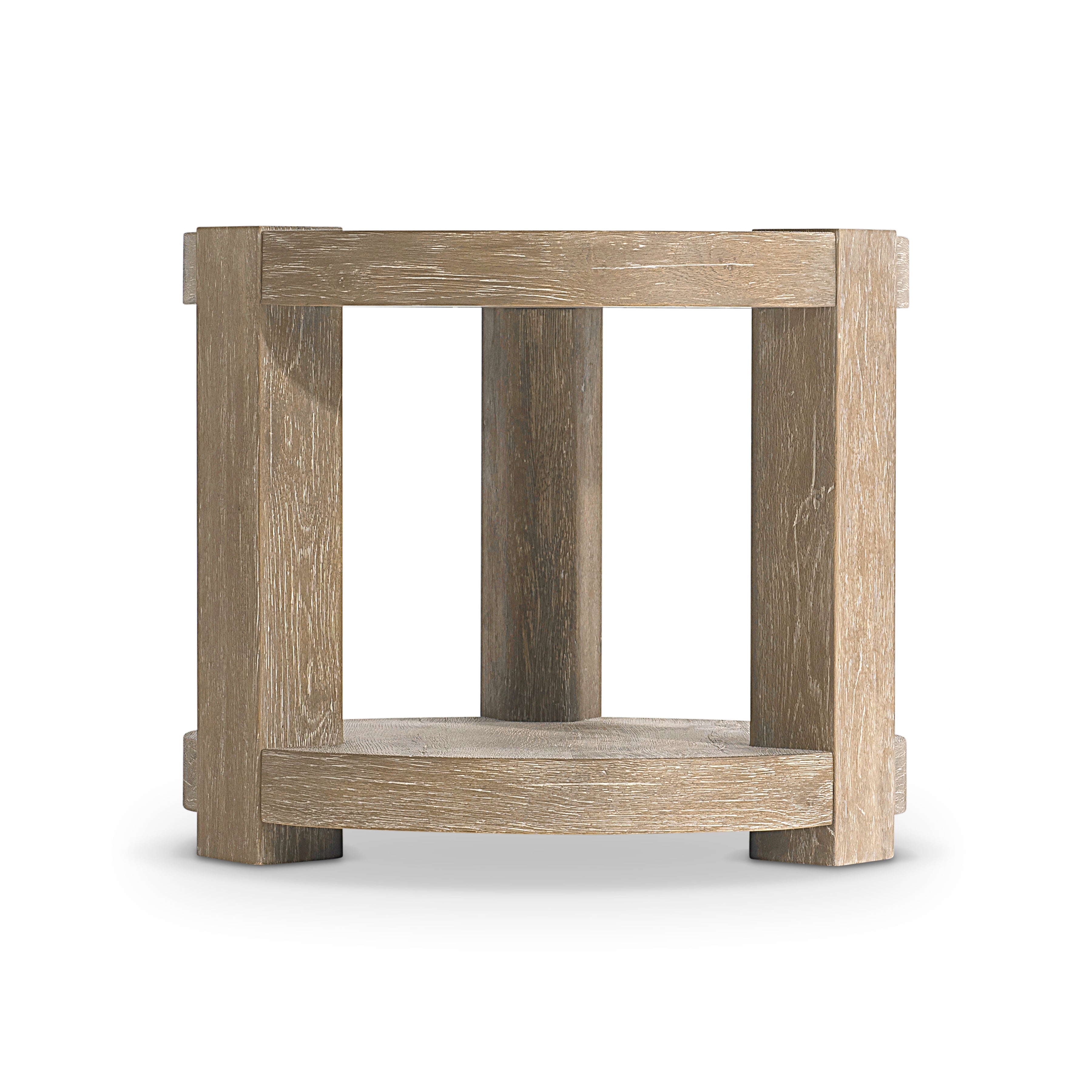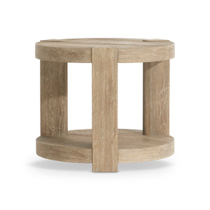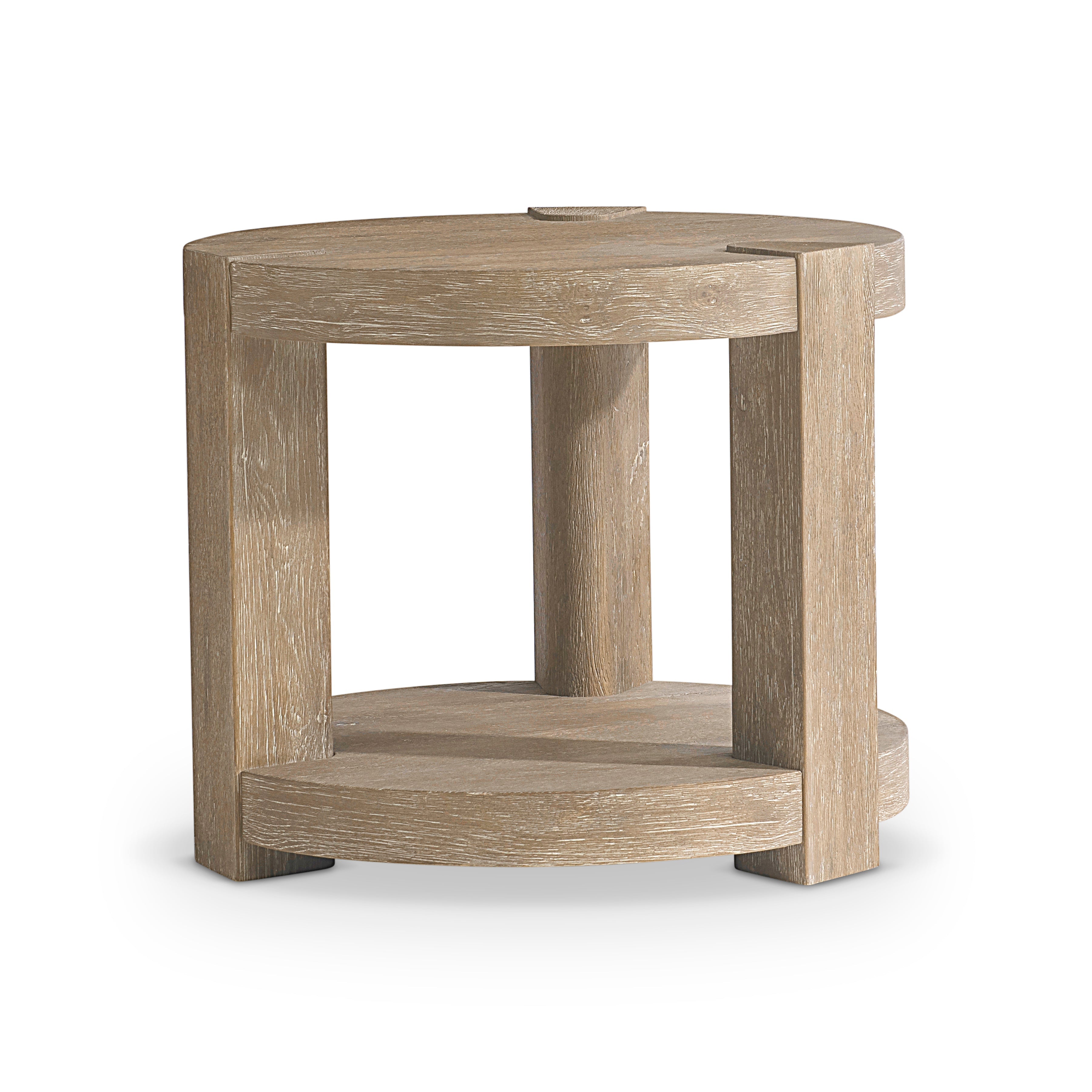 Wirebrushed Oak Round Side Table in Aurum finish with Bottom ShelfAdjustable glidesShaped Legs