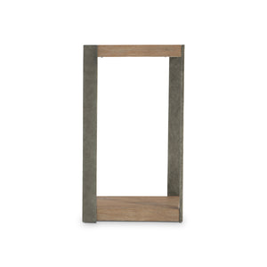 Oak solids and veneers in Aurum finish on table top and bottom shelf, with textured steel support posts in Barlow finishNatural characteristics in the wood are a normal part of this finish and make each piece uniqueSpecifications subject to change without notice