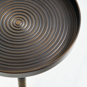 Round pedestal table.Cast aluminum in Bronze finish.Glides.Felt bottom for floor protection.