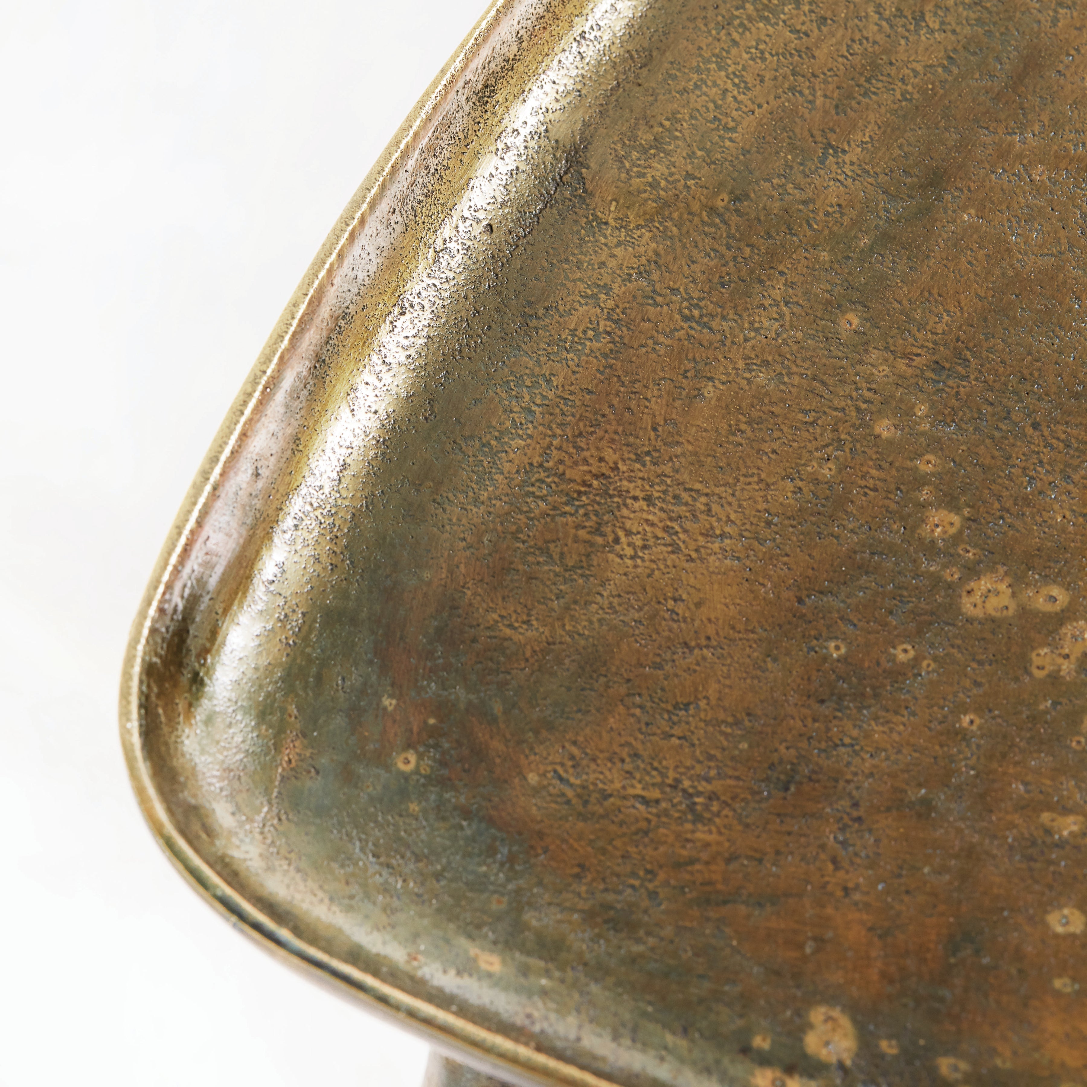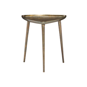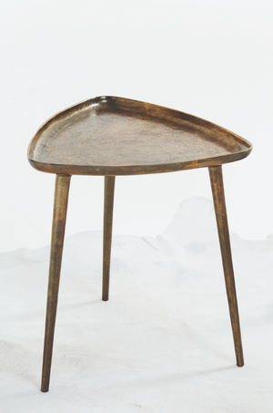 Triangular top and tripod base.Cast aluminum.Antique Dark Brass finish.Glides.