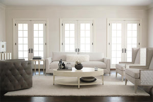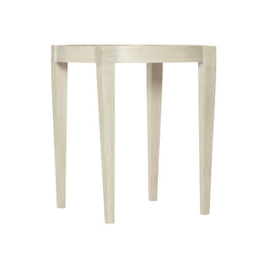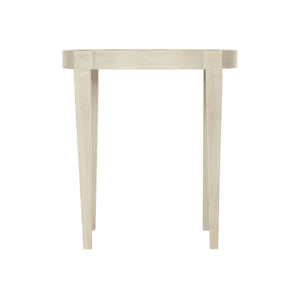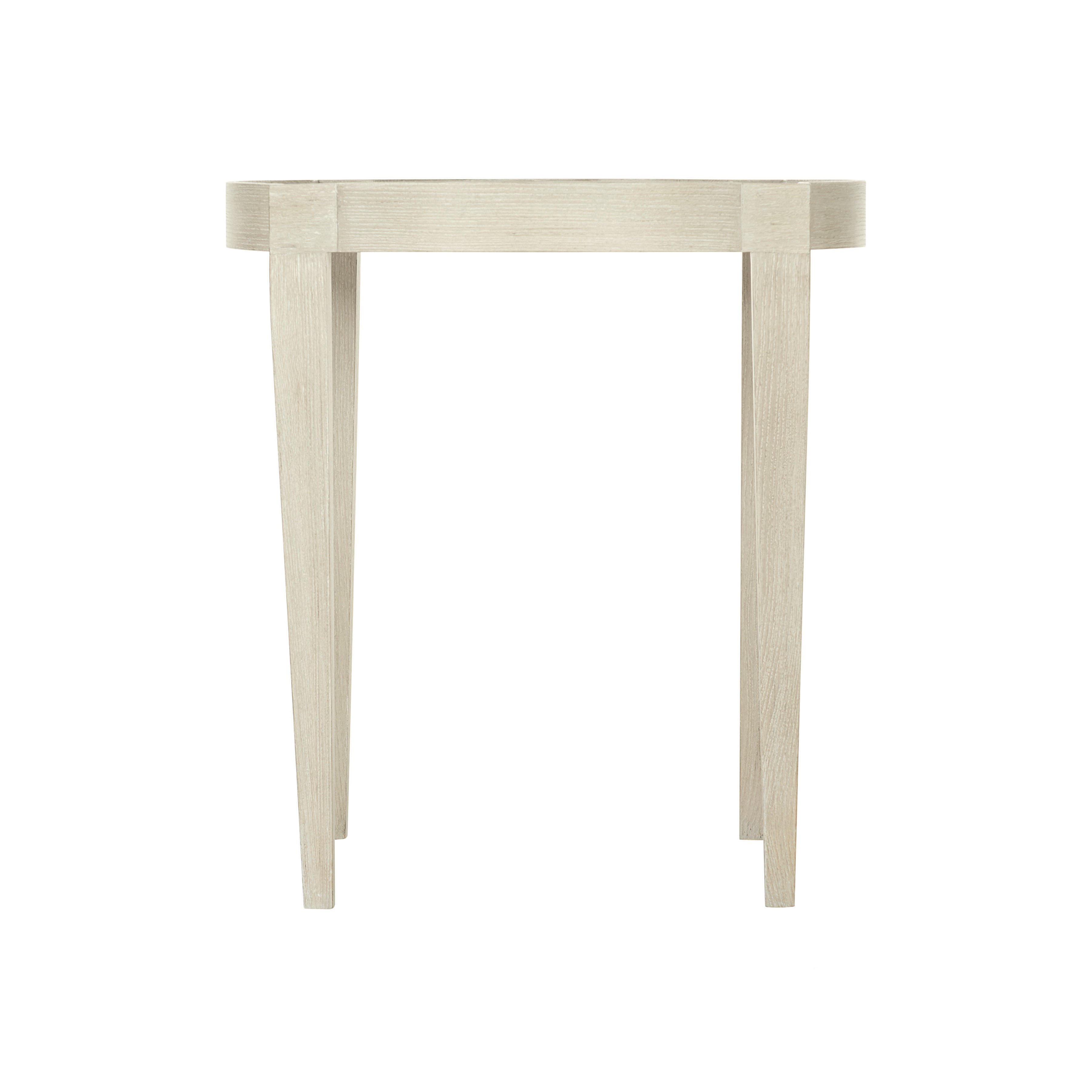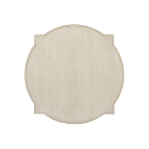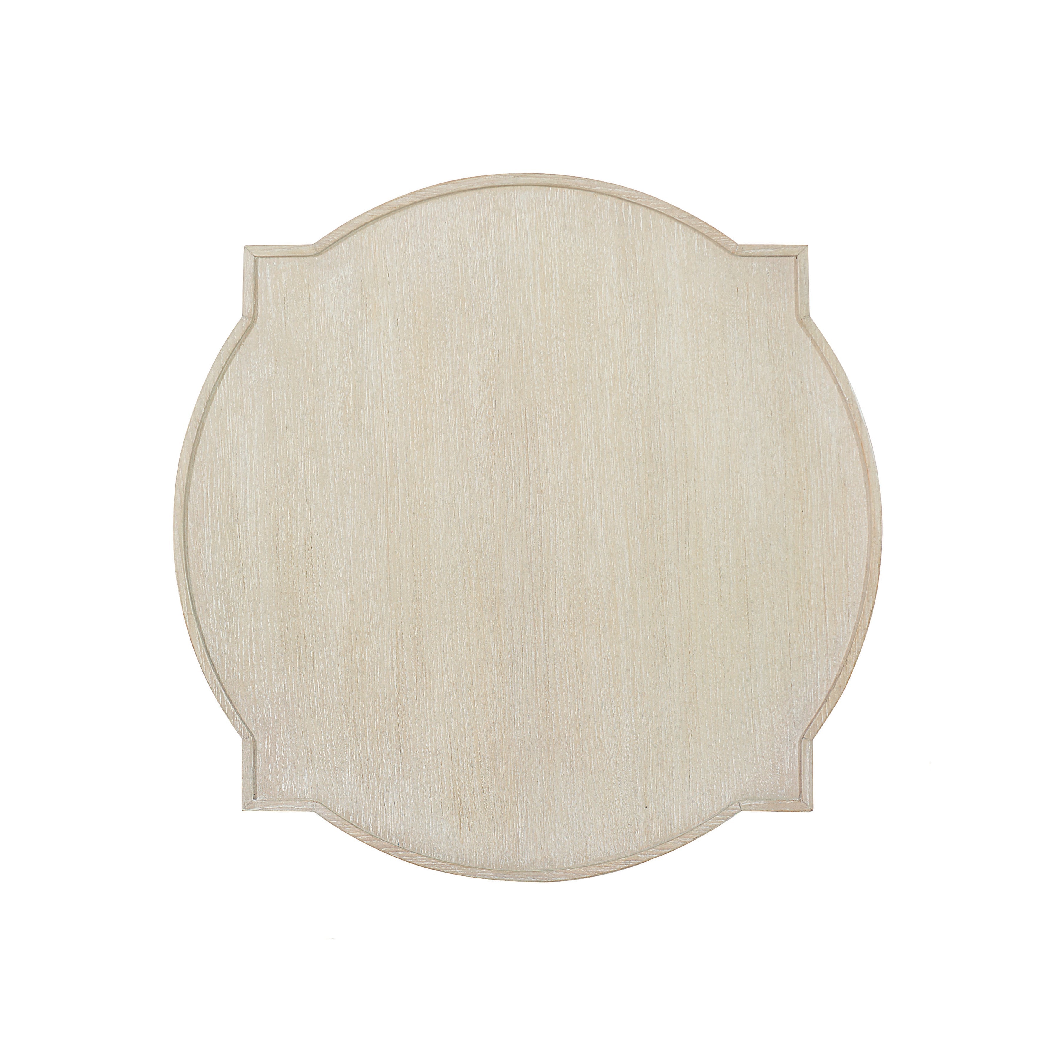 Uniquely shaped table top.Cerused linen finish.Four tapered legs.Adjustable glides.