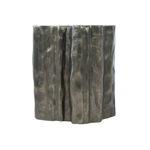 Tree-trunk inspired sculptural accent table.Cast aluminum in Graphite finish.Glides.Note: Hollow center.