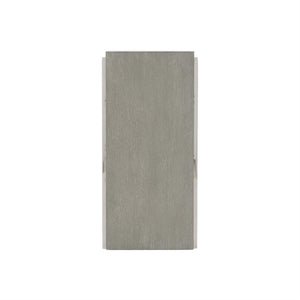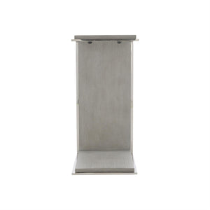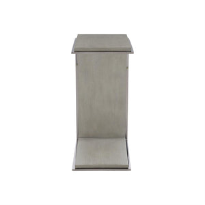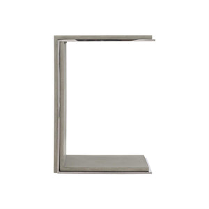 Rectangular accent table.Gray Truffle finish.Tubular polished stainless steel frame.Adjustable glides.
