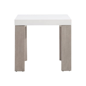 Square side table with Vintage Cream finish on smooth cast glass-reinforced (GRC) concrete top.Four quartered white oak veneered leg posts and reveal in Flint finish.Adjustable glides.Instruction sheet included.