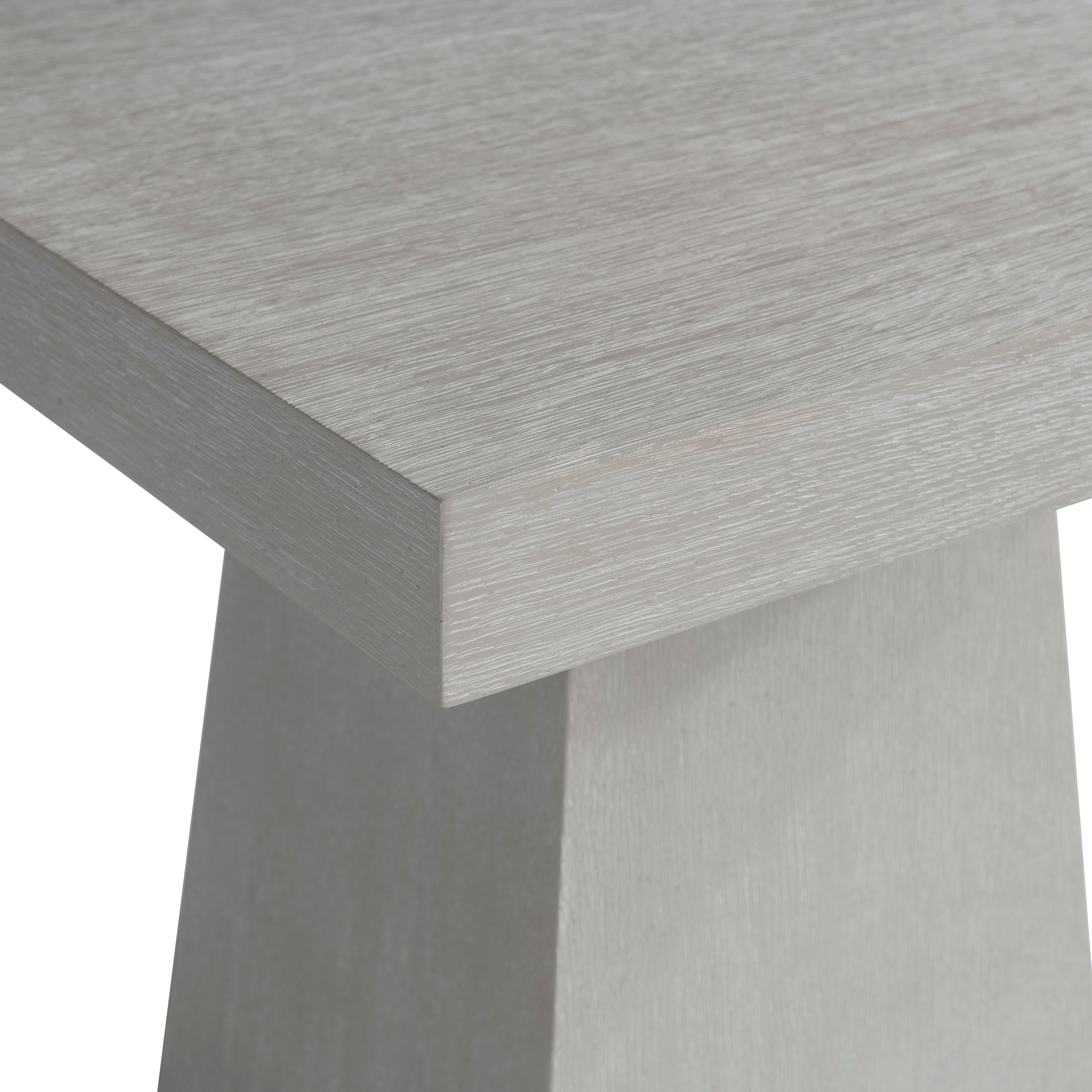 Oak solids and veneers in Greystone finish on table top and and tapered block baseAdjustable glidesSpecifications subject to change without notice