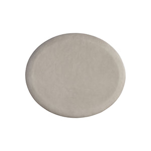 Cast resin in Pumice finishSlightly concave, oblong table top on thick round pedestal baseAdjustable glidesSpecifications subject to change without notice