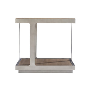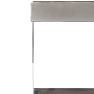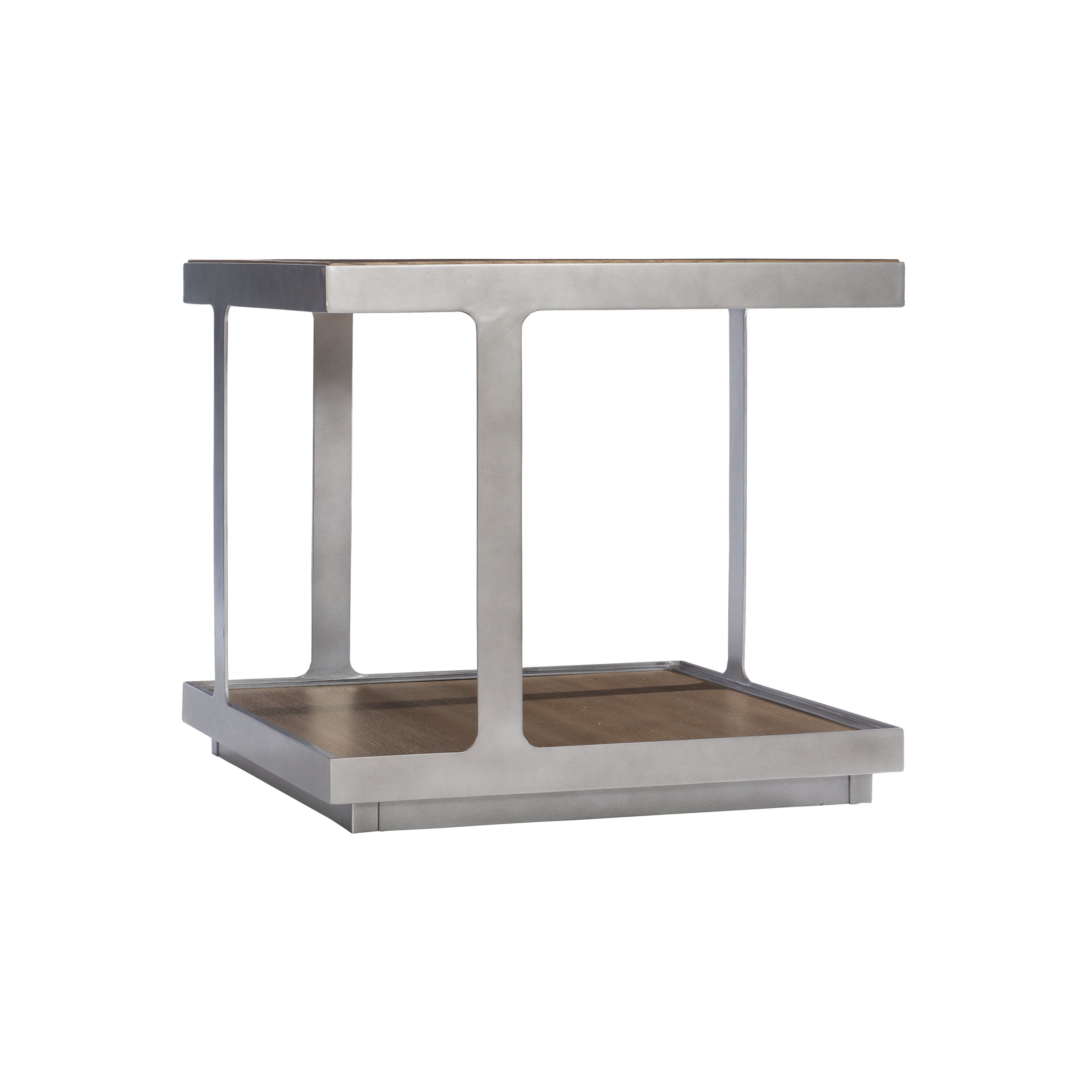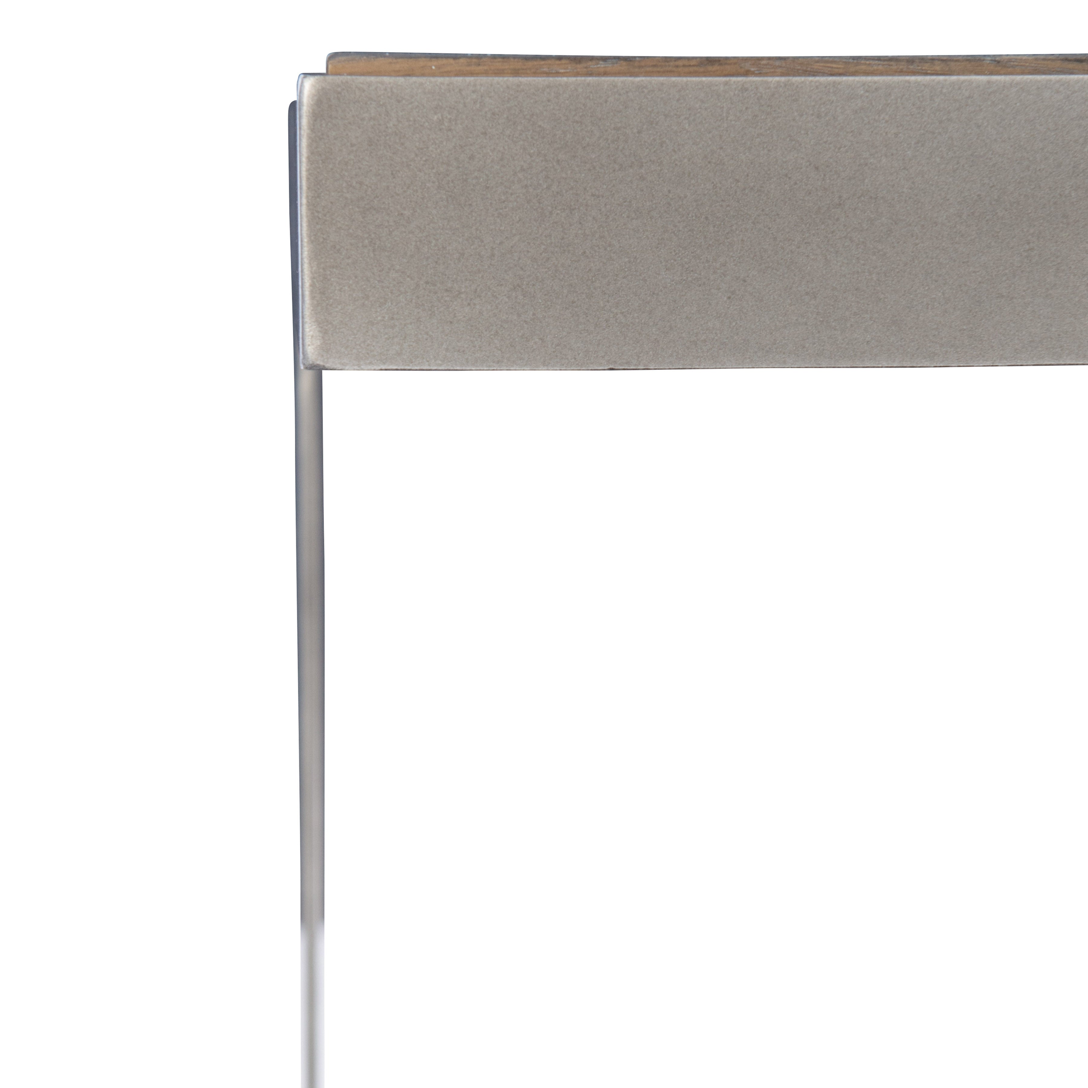 Quartered oak veneered top and bottom shelf in Portobello finish.Steel frame in Antique Pewter finish.Plinth base.Adjustable glides.
