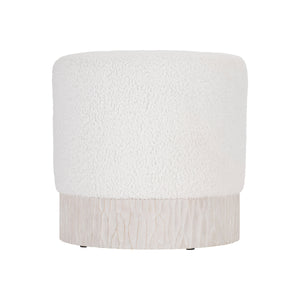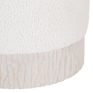Round bench with upholstered cushion top and sidesBase of chiseled pattern cast resin base in Fossil finishAdjustable glidesSpecifications subject to change without notice
