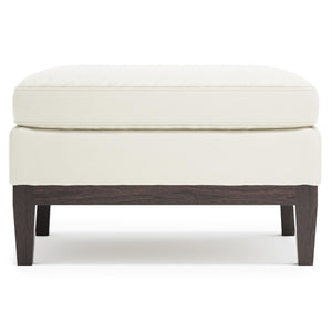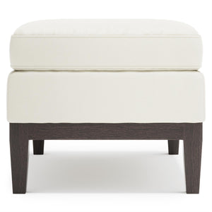 Delivering the highest level of comfort, the Cumberland ottoman features a plush rectangular cushion with luxuriously fitted leather. The relaxed and inviting seat sits atop an exposed wood base with sleek tapered legs. Sophisticated and stylish, this ottoman adds a refreshing pop of transitional style to any decor.