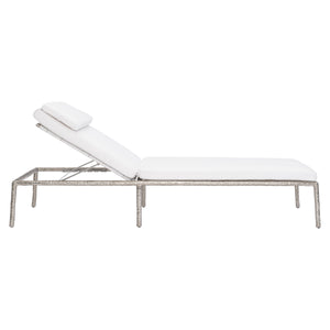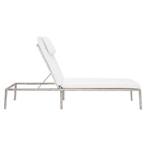 Rope in Cloud finish.Cast aluminum base in Graphite finish.Seat Cushion: High resiliency foam with poly wrap; Polyester fiber in water resistant tick.Construction: Cast aluminum with round rope weave.