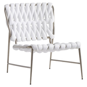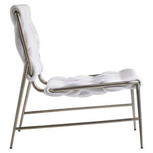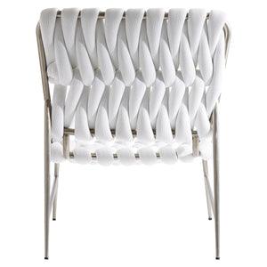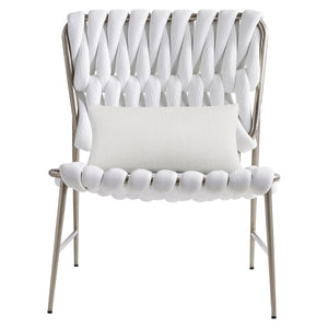 Powder-coated stainless steel frameFrame wrapped in neoprene-filled ropeEgret White finishIncludes one (1) 22" knife-edge throw pillow with welt