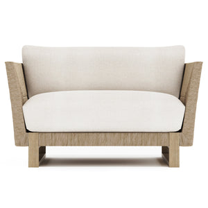 Teak legs that wrap from the front to the backAll-weather weaveBench cushion