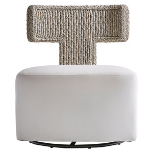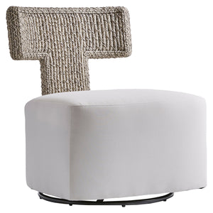 Aluminum frame in Gray Powder Coat finish.Swivel base.Woven All Weather Wicker in Egret Grey.Seat Cushion: Tight seat; HR foam with water resistant tick.Exterior grade wood & materials.