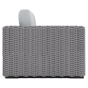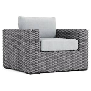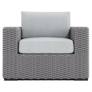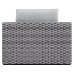 Woven rope in Grey Mist finishAluminum legs in Raven finishOutdoor Performance Fabric