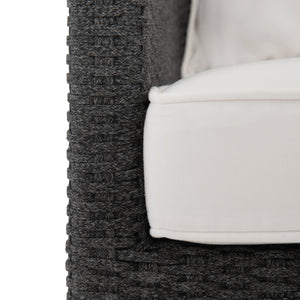 Flat rope weave.Gray Flannel finish.Powder coated aluminum.Lava base finish.