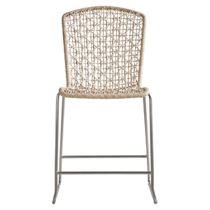 Clear powder-coated, tubular #304 stainless steel frameSeat and back wrapped in twisted All-Weather Wicker in Hazelnut finishStainless steel outdoor glides attach to and wrap the stretchers
