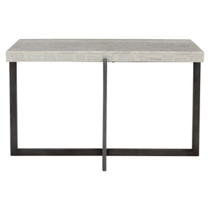 Terrazzo top with polyurethane protective top coat.Powder-coated Stainless Steel base in Flint Gray finish.Adjustable glides.