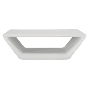 Bone finish on cast glass reinforced concrete table, tapers from top to bottom.Open front-to-backStainless Steel adjustable glides with black plastic bottom.