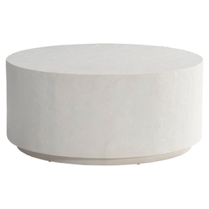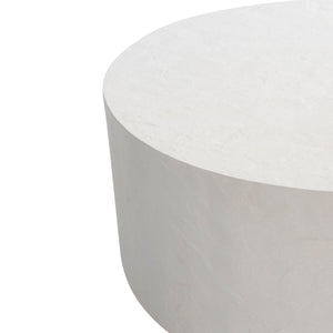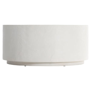 Round cocktail table of glass-reinforced concrete (GRC).Plinth base.Stainless steel adjustable glides.