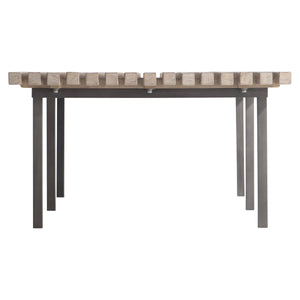 Carbonized teak in Sea Oat finish with metal legs in Gun Metal finishSlatted topStainless steel adjustable glidesSpecifications subject to change without notice
