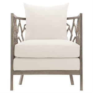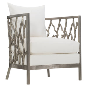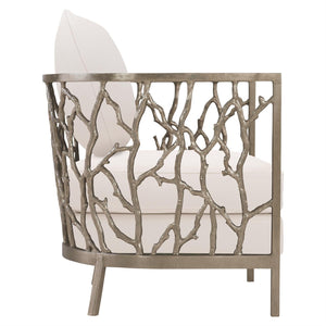 Cast aluminum faux bois frame with clear, powder-coat finishExteriors Plush seat cushionKnife-edge fiber back pillowOutdoor performance fabricExterior grade materialsProtective cover available for an additional charge