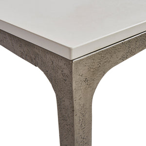 TOP: Dekton Ultra Compact stone side table top in Shell White finish.Inserts for connection to table base.BASE: Metal side table base in Textured Graphite finish.Table has stainless steel bolts, inserts, and adjustable glides with stainless steel threads.