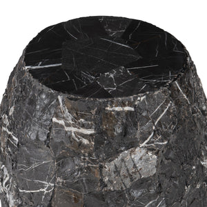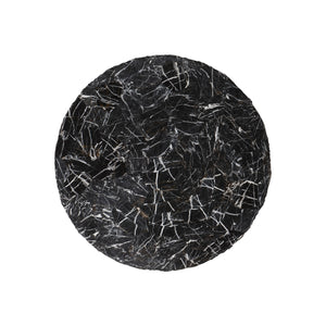 Laminated Black Onyx stone.Round table with smooth top and rough sides.Adjustable glides.