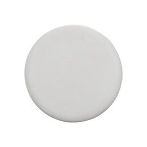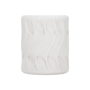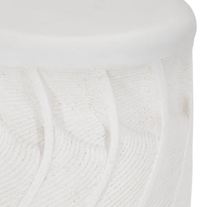 Scalloped wave pattern on sides of round accent table made of natural stonecast in White finish.Protective polyurethane top coat.Adjustable glides.