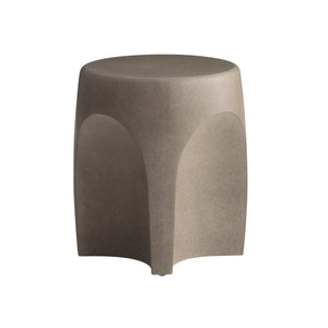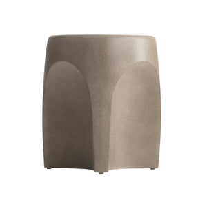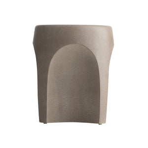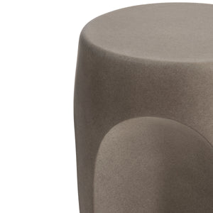 Tapered round side table of cast glass-reinforced concrete (GRC).Bedrock finish with smooth surface.Four concave sides.Stainless steel adjustable glides and inserts.
