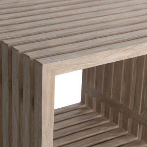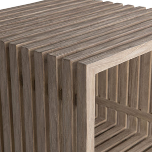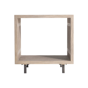 Carbonized teak in Sea Oat finish with metal legs in Gun Metal finishOpen interior with slatted top, bottom and sidesStainless steel adjustable glidesSpecifications subject to change without notice