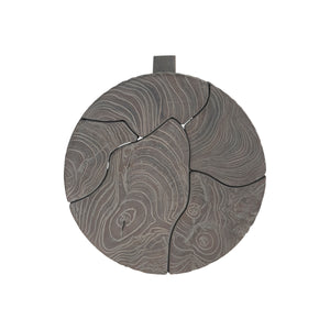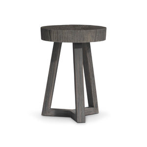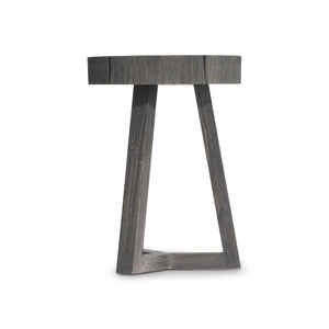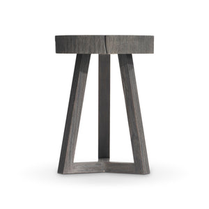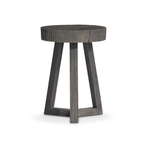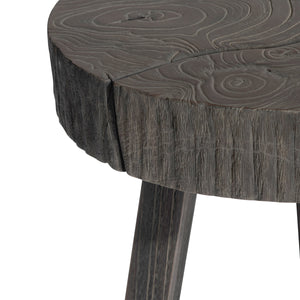 Round Sliced Teak Accent table in Smoked Truffle finishStainless Steel Adjustable glides